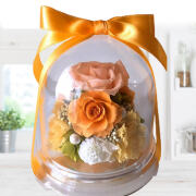 オレンジ系の花人気第1位プリザーブドフラワーを埃から守るドームアレンジ。当店一番人気のロングセラー商品です。