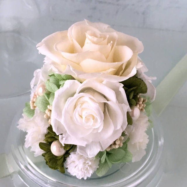 お花に埃が掛からないため、 お手入れが簡単で、プリザーブドフラワーが初めての方には特におすすめです。
