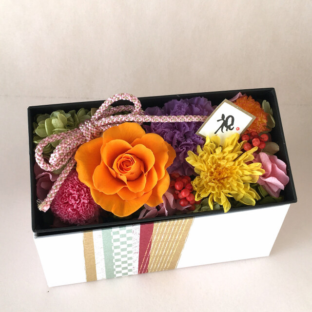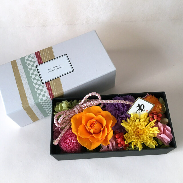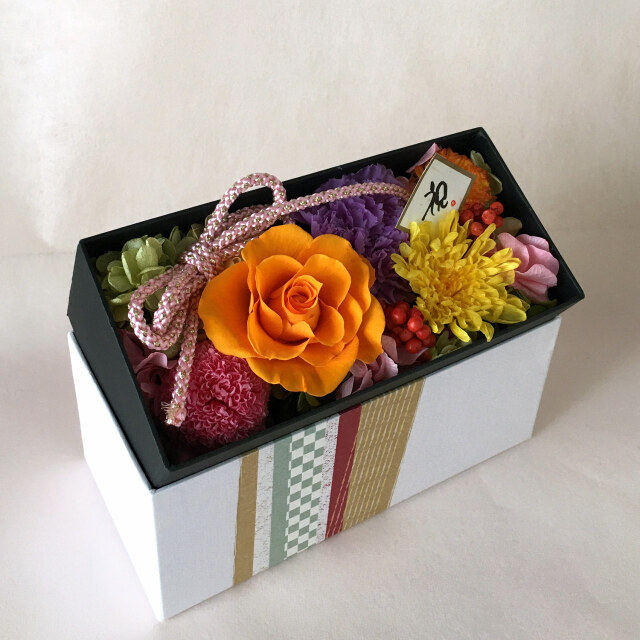 開いて感激!華やかなお花を詰め合わせた和風ボックスアレンジ