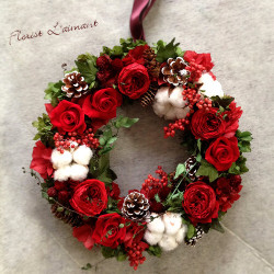 100%プリザーブドフラワーの定番クリスマスリースが今年も人気!